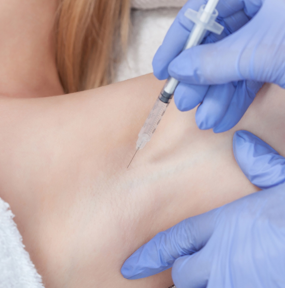 Bei starkem, krankhaftem Schwitzen – insbesondere im Bereich der Achseln, Hände oder Füße – kann Botulinumtoxin die Aktivität der Schweißdrüsen effektiv hemmen. Die Wirkung tritt nach wenigen Tagen ein und hält in der Regel mehrere Monate an, in der Regel 4-6 Monate.